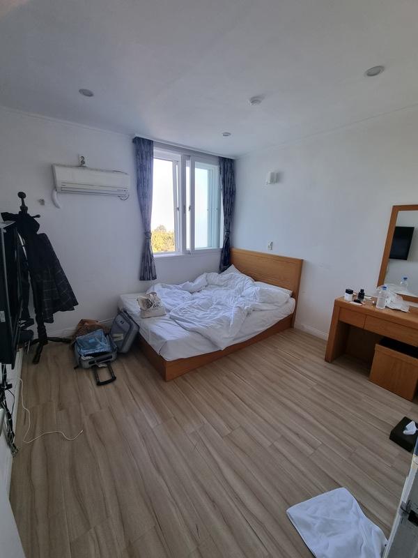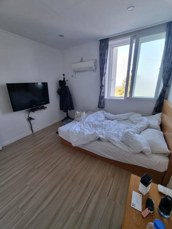 체크아웃 하기 전 방 풍경들 . 스탠다드 더블2인용 침대에 성인2명이 조금도 비좁지 않게 잘 자고 일어난 아침모습.
