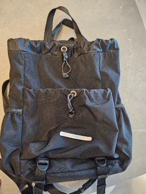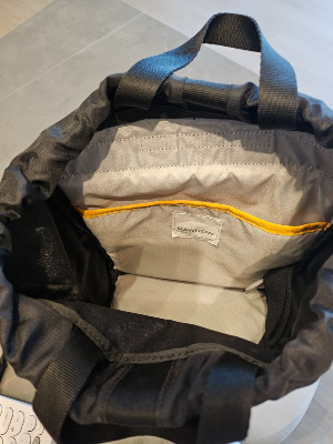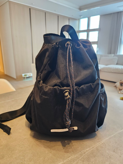그리고 디자인 만큼 재질도 무척 마음에 드는데 가벼운 워셔블 나일론 원단으로 발수가공코팅이 되어 있어 생활방수가능하지만 흐물흐물한 나일론,일명 립스탑 원단? 낙하산 재질이라고 해서 레스포삭 브랜드의 대표원단같은 얇은 나일론이 절대 아니다. 그래서 개인적으로 더 마음에 드는데다 탄탄하고 촘촘한 나일론이라 물건을 넣으면 축 처지지 않고 어느정도 잡아주는 맛이 있다.