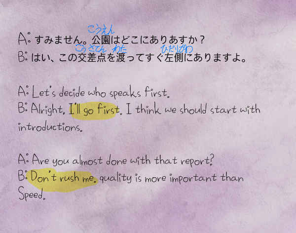 영어) A: 누가 먼저 말할지 정하자.