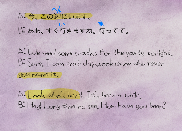 일어 : 지금 이 근처에 있어요.(이마,코노헨니이마스)