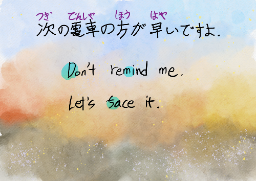 일어: 다음 전철이 빨라요. (쯔기노덴샤노호오가하야이데스요)