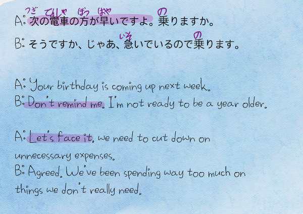 일어) A: 다음 전철이 더 빨라요. 탈래요?