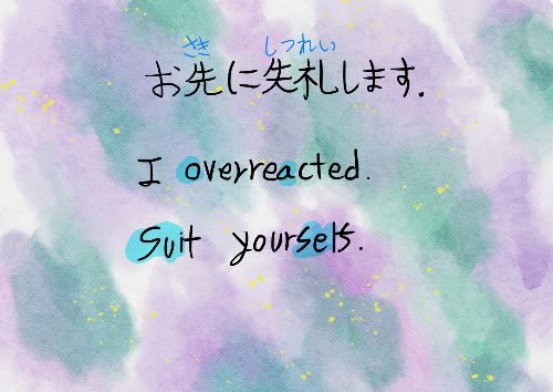 일어: 먼저 실례하겠습니다.(오사끼니시쯔레이시마스)