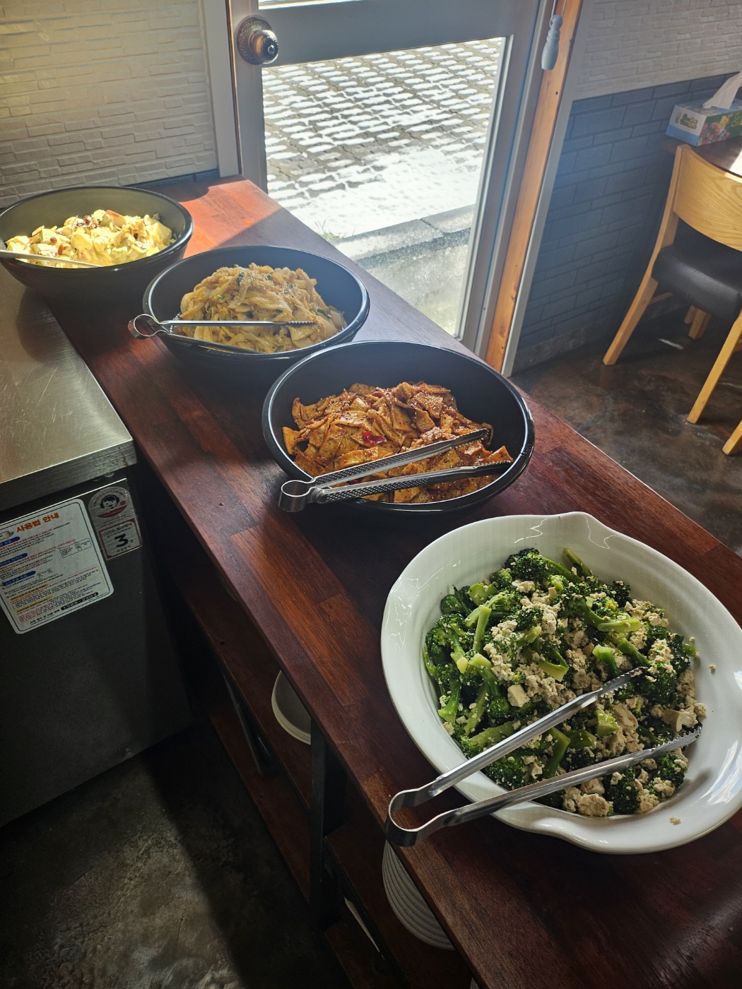 밥 해먹기 귀찮을 때, 찬거리가 똑 떨어졌을 때, 집에서 운동삼아 10분 정도 걸어가면 집밥같은 한식뷔페집이 있다. 일요일만 휴무,매일 11시부터 오후2시까지 딱 3시간동안 점심&아점?느낌의 식당인데, 맛이 진짜 집밥 느낌이다.