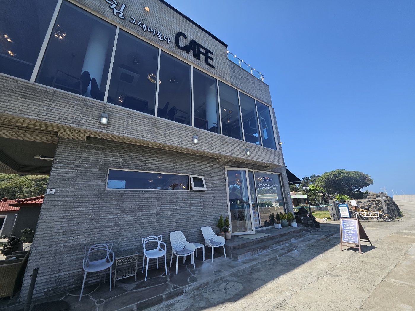 독보적인 바다뷰가 멋진 비양도에서 제일 눈에 띄는 카페에 제일 전망좋은 좌석에 앉아 먹어본